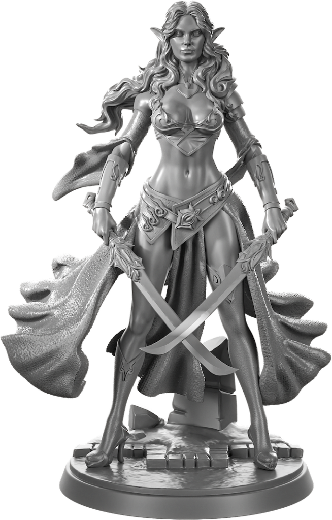 Ytterligare en ny studio, ”Hold my Miniature”, kommer i månaden också att släppa en kvinnlig Wood Elf Assassin som är beväpnad med ett svärd i var hand, eller en pilbåge. Hon har ett helt sjukt balanssinne, eftersom hon lönnmördar folk i högklackat.. Hon kommer även att finnas tillgänglig som en dekorativ byst.