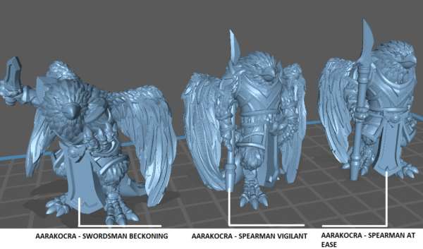 | Aarakocra | Aarakocra – Swordsman Beckoning, Aarakocra Spearman – Vigilant, Aarakocra Spearman – At Ease |