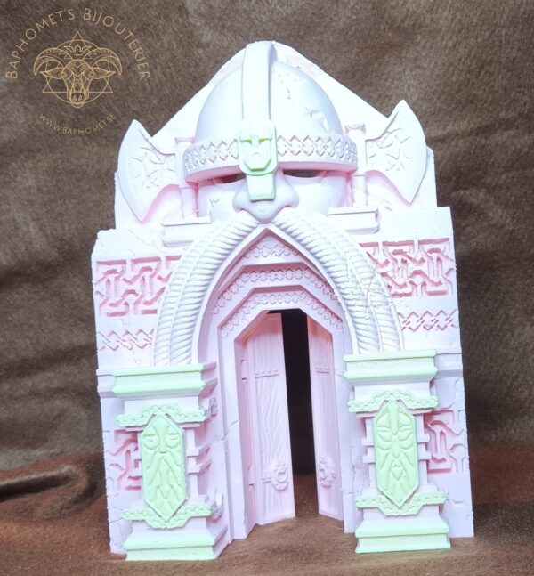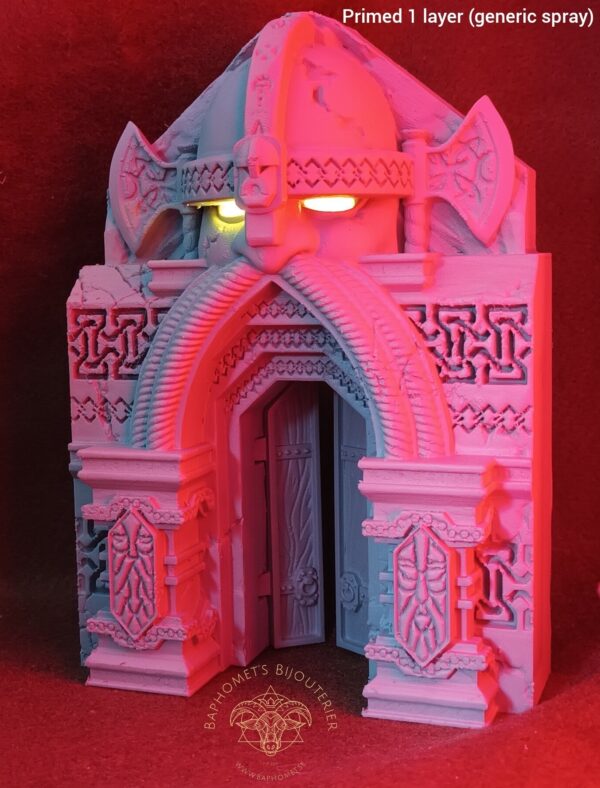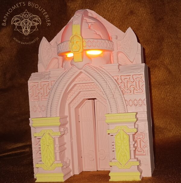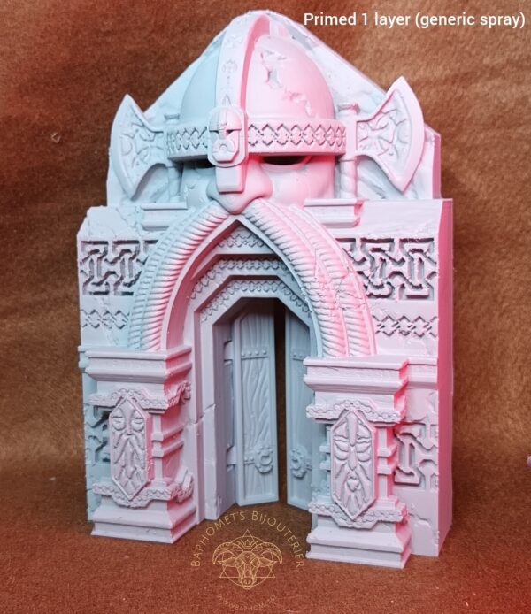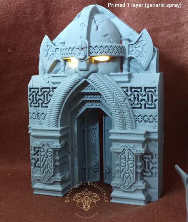 The left, right, and backsides of the dwarven gate are flat, and without details. The backside of the ”wooden” doors are also flat.
