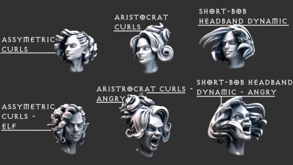 Short-Bob & Headband – Female Heads (Normal & Angry) (Several Sizes)