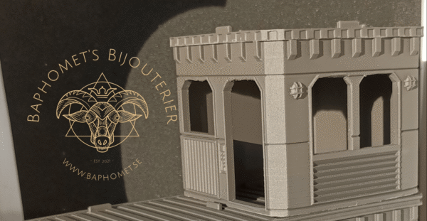 Dessa hus skrivs ut i PLA, eller PLA+, på en filamentskrivare, och ej i harts (resin).