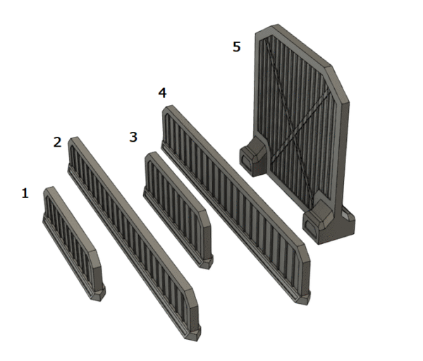 | elevation | 1) Low Parapet, 2) Low Wide Parapet, 3) High Parapet, 4) High Wide Parapet, 5) Enclave Wall |