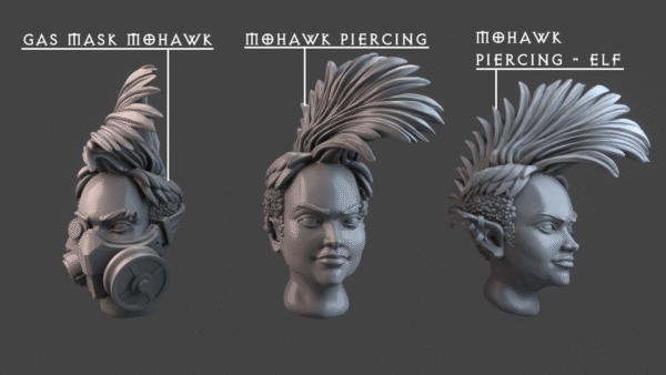 Mohawks – Female Heads (Gas Mask, Unmasked, Elf) (Several Sizes)