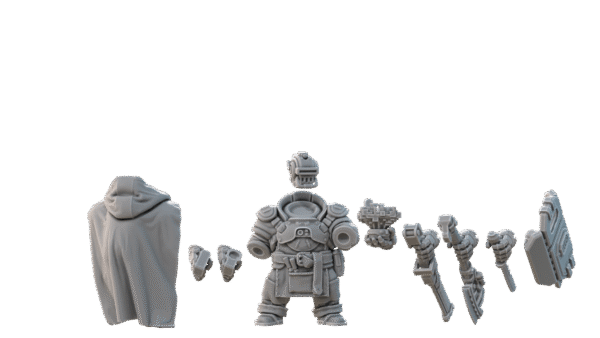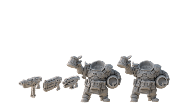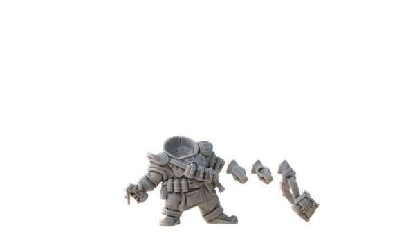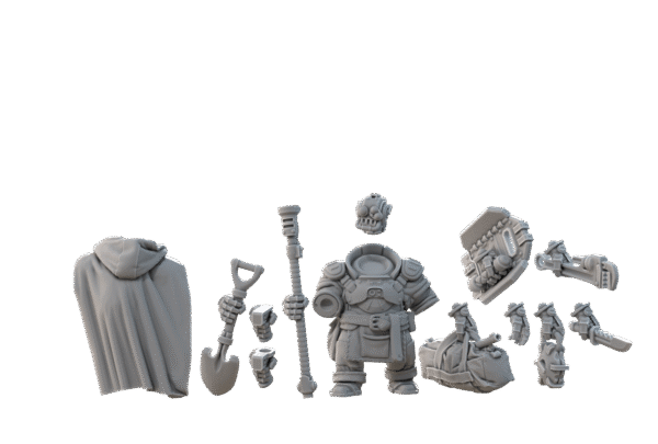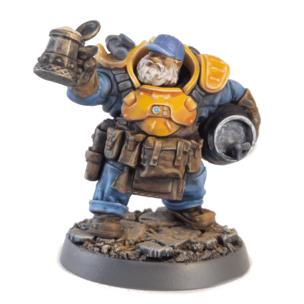 Skala 32mm. Dessa Roughneck Specialists är modulära och du behöver välja, och plocka ihop vilka tillbehör du önskar. Det kan behöva väljas, och köpas till, huvuden , backpacks & cloaks, och vapendelar från respektive sektion. Tänk också på att om en dvärg har en ”Cloak”, så kan den ej ha en ”Backpack”.