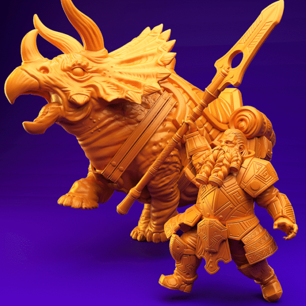 Triceratops & Dwarf wielding a Glaive