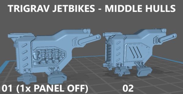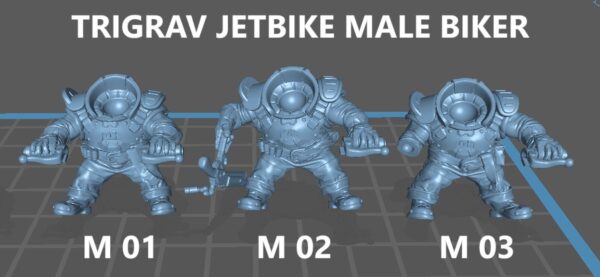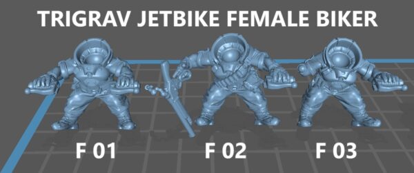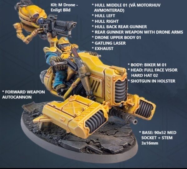 | SSD - TriGrav Jetbikes | Kit: F – Enligt Bild, Kit: M Drone – Enligt Bild, Kit: M – Enligt Bild, Middle Hull 01, Middle Hull 01 – Searchlight, Middle Hull 02, Middle Hull 03 – Super Charged, Back Hull, Back Hull – Drone Gunner, Left Hull, Right Hull, Forward Weapon – Autocannon, Forward Weapon – Machine Gun, Rear Gunner – Drone Arms, Rear Gunner – Weapon, Exhaust, Radio, Right Handle Bar, Shotgun Holster – Empty, Shotgun Holster – Shotgun, Biker – F 01, Biker – F 02, Biker – F 03, Biker – F 03 – Handgun Grip, Biker – F 03 – Long gun Grip, Biker – F 03 – Hand Shotgun, Biker – M 01, Biker – M 02, Biker – M 03, Biker – M 03 – Handgun Grip, Biker – M 03 – Long gun Grip, Biker – M 03 – Hand Scanner, Biker – M 03 – Hand Shotgun, Base: 90×52 with 3mm Socket, Stem: 16×3 mm, Stem: 17×3 mm, Stem: 21×3 mm, Stem: 24×3 mm |