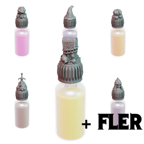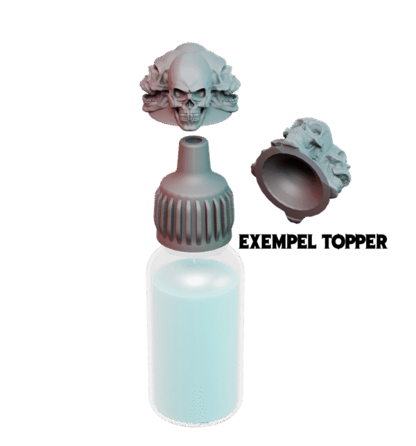 Dessa korkar finns både som ”cap” (helkork med gängor) till dropper bottles, eller som ”topper” som går att fästa an mot både dropper bottle-korkar, samt på paint pots-korkar.