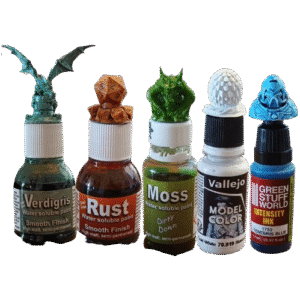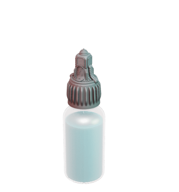 OBS: Crosslances studio har beräknat sina mått främst på Vallejo Dropper Bottles. Bilderna till vänster är hur några av föremålen kan se ut på olika färgbehållare.