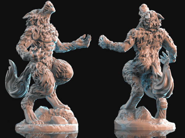 ”A werewolf is a savage predator that can appear as a humanoid, as a wolf, or in a terrifying hybrid form—a furred and well-muscled humanoid body topped by a ravening wolf’s head.” – DnD Beyond.com