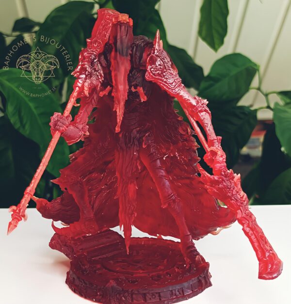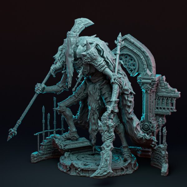 ”Born the eldest son of a cruel emperor, the Faceless King was cast out as an infant due to a curse that twisted and warped his body and mind. Cared for by servants exiled with him, these seconds grew as corrupted as their charge, eventually succumbing to madness and despair.