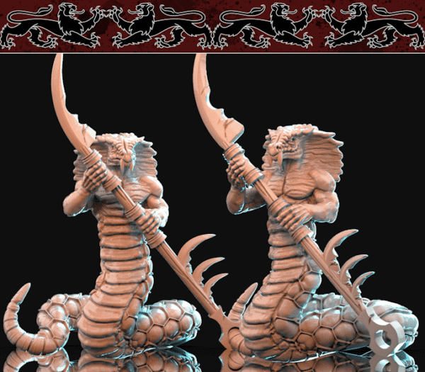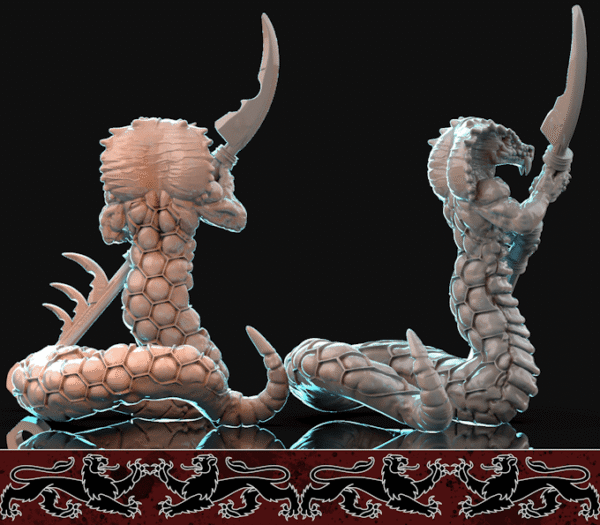 ”The appearance of yuan-ti varied greatly from nearly human-like to nearly snake-like, but all had some serpentine features. Scale colors were usually simple greens and browns, but more elaborate swirls, stripes, or diamond patterns were possible, even in blues and reds” – Forgotten Realms Wiki
