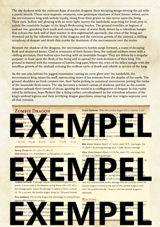 | Zombie Dragon & Ghoul Rider | Ghoul Rider & Base, Zombie Dragon – Unmountable, Zombie Dragon – Mountable, Zombie Bat – Unmountable, Zombie Bat – Mountable, UTSKRIFT: STATS – Svart/Vitt A4 (Vikt), UTSKRIFT: STATS – Svart/Vitt A4 (Laminerad) |